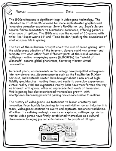reading comprehension worksheets vinces video game - video games differentiated reading comprehension passages and questions | reading comprehension passages video games